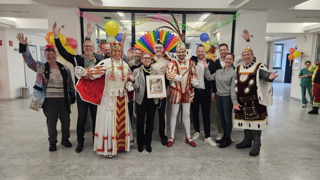 Prinz Niklas I., Bauer Clemens und Jungfrau Aenne machten frisch proklamiert auf einem ihrer zahlreichen Termine in Bayenthal Halt. Bei ihrem Rundgang durch das Krankenhaus und den Besuchen in den Patientenzimmern versprühten sie gute Laune und sorgten bei wirklich allen für großes Strahlen und Begeisterung. Und weil einer der Patienten an diesem Tag Geburtstag feierte, stimmten sie ein spontanes Geburtstagsständchen an.