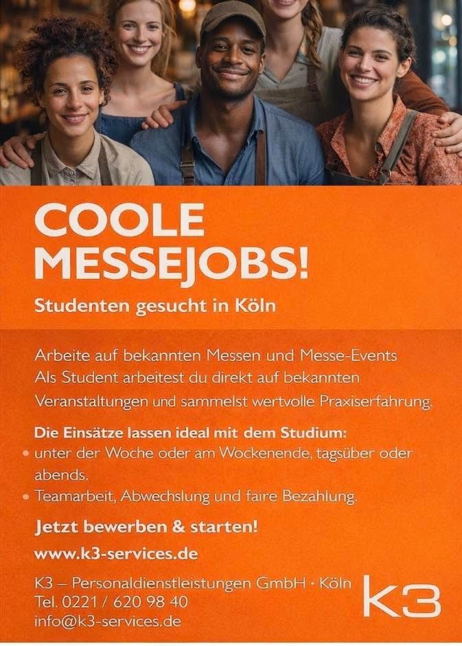 Coole Messejobs: Studenten gesucht in KölnAktuelles 23. Januar 2026/von Gastbericht https://koelner-stadtteilliebe.de/wp-content/uploads/2025/12/Hintergrund-Winter-2025.png 500 500 Gastbericht https://koelner-stadtteilliebe.de/wp-content/uploads/2025/12/StadtteilLiebe-1024x146b-1.png Gastbericht2026-01-23 15:03:282026-01-23 15:03:39Coole Messejobs: Studenten gesucht in Köln