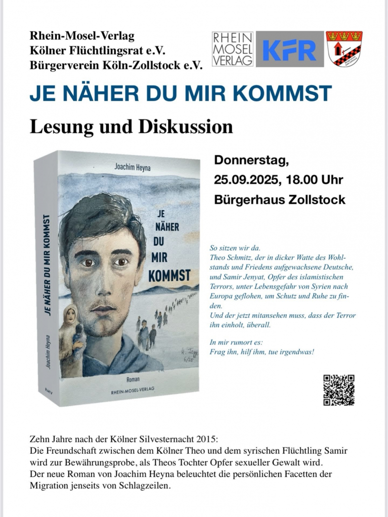 Der Rhein-Mosel-Verlag, Bullay, lädt gemeinsam mit dem Kölner Flüchtlingsrat e.V. und uns zur Premiere des neuen Romans von Joachim Heyna ein: