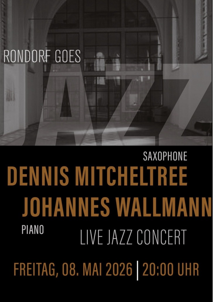 Am 08. Mai 2026 um 20 Uhr findet das Konzert in der Kulturkirche in Rondorf statt. Zu hören sind der amerikanische Saxophonist Dennis Mitcheltree und der deutsch-kanadische Pianist Johannes Wallmann. Der Eintritt ist frei, Spenden sind jedoch willkommen. Weitere Informationen zur Veranstaltung finden Sie unter www.jazz-in-rondorf.de