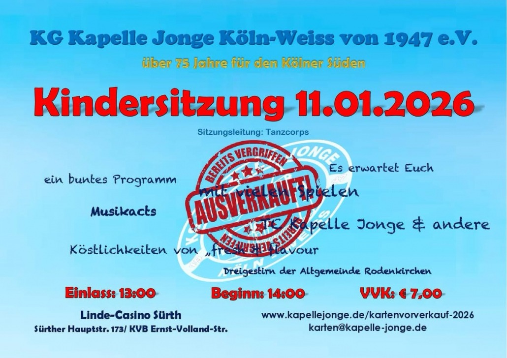 • Kindersitzung der KG Kapelle Jonge 11.1.2026