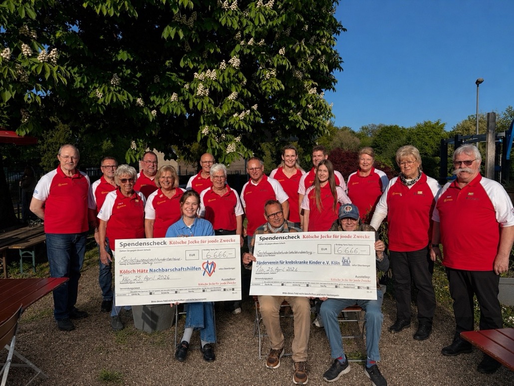 Unglaublich, was ein kleiner Kreis an wohlwollenden Karnevalisten in der letzten Session auf die Beine gestellt hat und jetzt im Frühling mit Stolz übergeben konnte. Die Kölschen Jecke für joode Zwecke zeigen nämlich Jahr für Jahr, was echte Herzenswärme bedeutet, und das auf wunderbar fröhliche, bunte und zutiefst berührende Weise. Mit ihren liebevoll gestalteten Motiv-Ansteckern zaubern sie nämlich nicht nur ein Lächeln in die Gesichter der Karnevalisten in der Altgemeinde Rodenkirchen, sondern bewegen auch Großes für den guten Zweck. Mit ihrem alljährlich aufgelegten Karnevals-Pin, welcher zugunsten von zwei mildtätigen Organisationen aufgelegt und in der Altgemeinde verkauft wird, wächst nämlich jede Session diese besondere Aktion weiter über sich hinaus: Denn mit Begeisterung werden die Pins getragen, mit Freude verschenkt und vor allem mit beeindruckender Großzügigkeit unterstützt. So kam in der letzten Session eine sensationelle Spendensumme zusammen, die direkt dort in gleichen Teilen aufgeteilt ankam, wo sie gebraucht wird – beim Kölsche Hätz, der Nachbarschaftshilfe im Stadtbezirk Rodenkirchen, sowie beim Förderverein herzkranker Kinder Köln e.V.