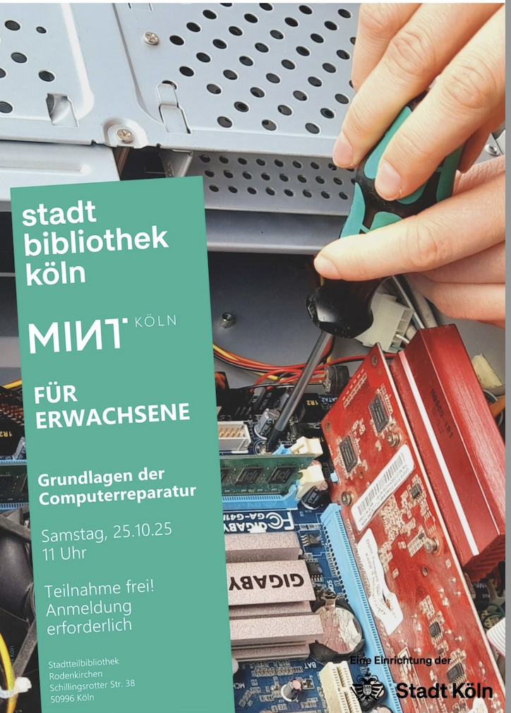 Mint – Grundlagen der ComputerreperaturAktuelles 14. Oktober 2025/von Gastbericht https://koelner-stadtteilliebe.de/wp-content/uploads/2025/09/Hintergrund-Herbst-2025.png 500 500 Gastbericht https://koelner-stadtteilliebe.de/wp-content/uploads/2025/09/StadtteilLiebe-1024x146b.png Gastbericht2025-10-14 11:19:382025-10-14 11:19:38Mint – Grundlagen der Computerreperatur