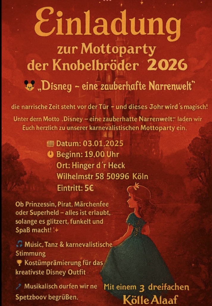 Mottoparty der Knobelbrüder 2026: Disney- eine zauberhafte Narrenwelt