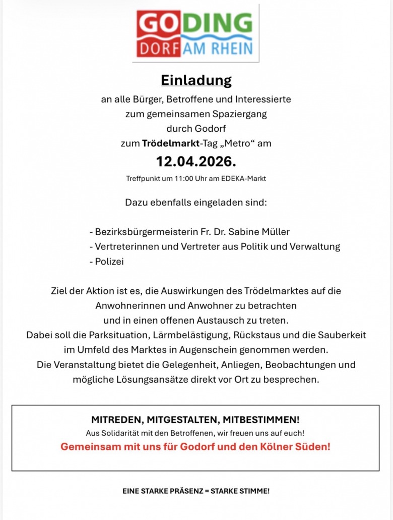 • Politischer Spaziergang Trödelmarkt Godorf 12.4.2026