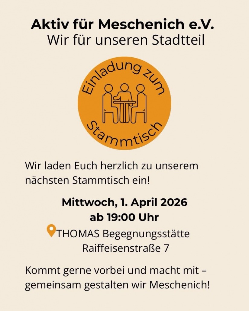 • Stammtisch „Aktiv für Meschenich e.V.“ 1.4.2026