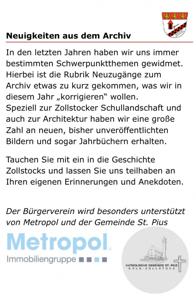 Der allgemeine Bürgerverein Zollstock informiert: Archivpräsentation