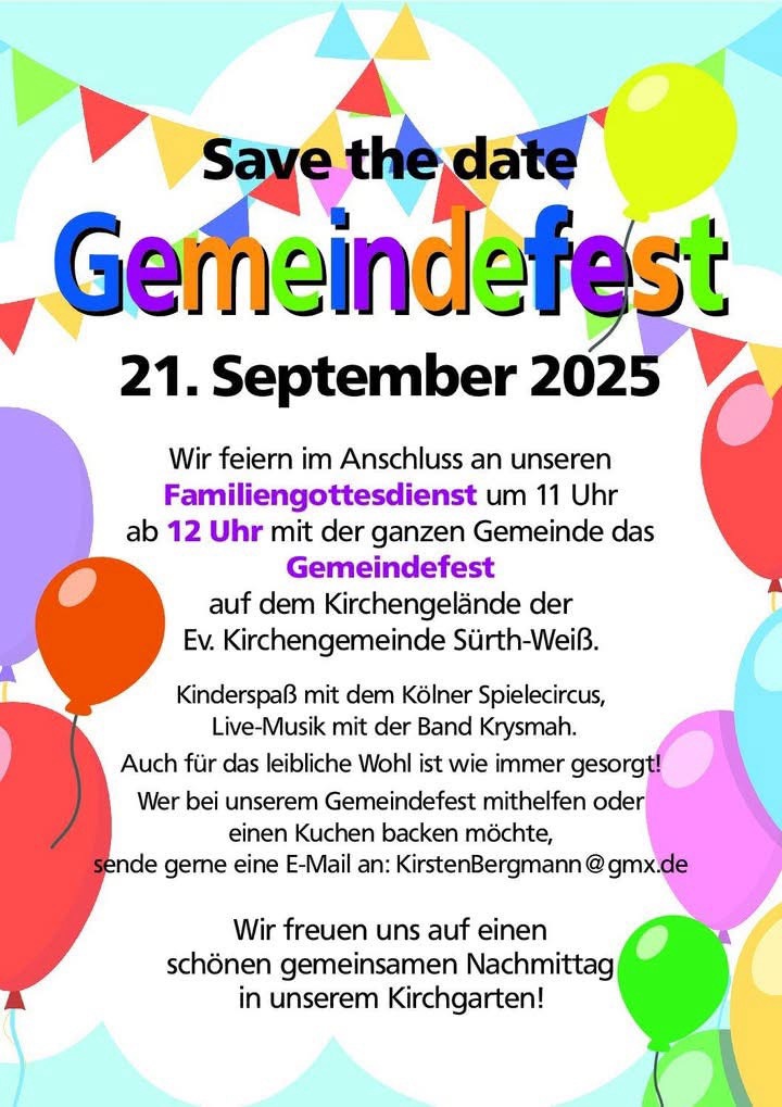 Gemeindefest Ev. Kirchengemeinde Sürth-Weiß