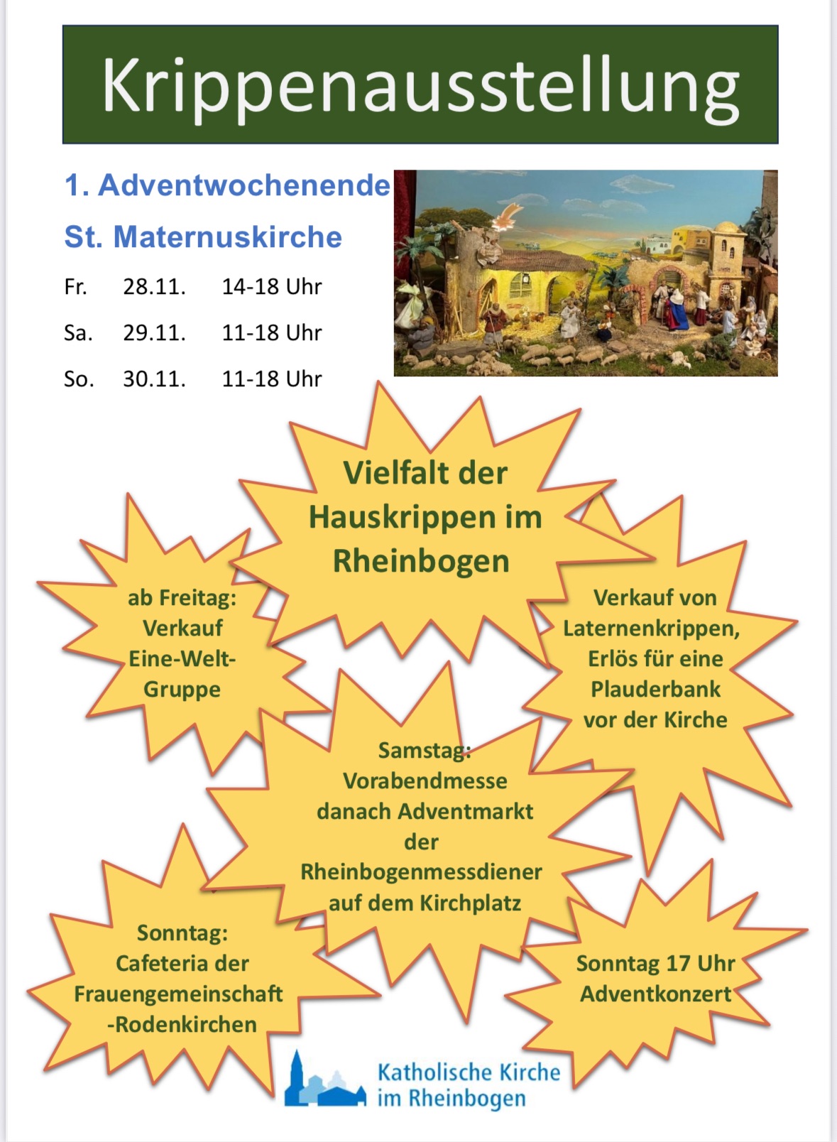 Hauskrippen-Ausstellung und Adventsmarkt in der Kirche St. Maternus am 1. Adventswochenende