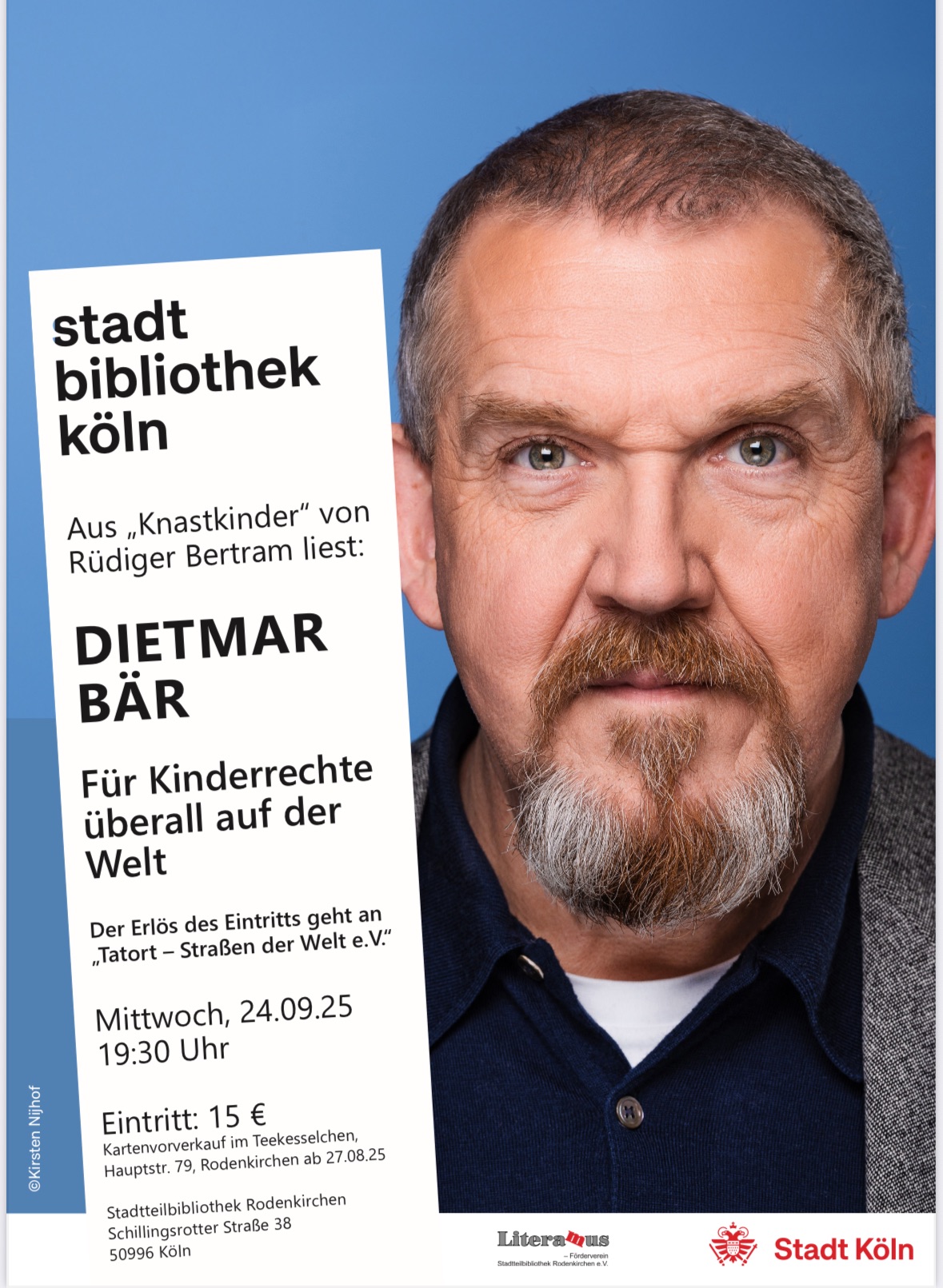 Wir freuen uns auf Dietmar Bär, eine berührende Lesung, Gespräche mit ihm, und natürlich auf das Publikum an diesem besonderen Abend i