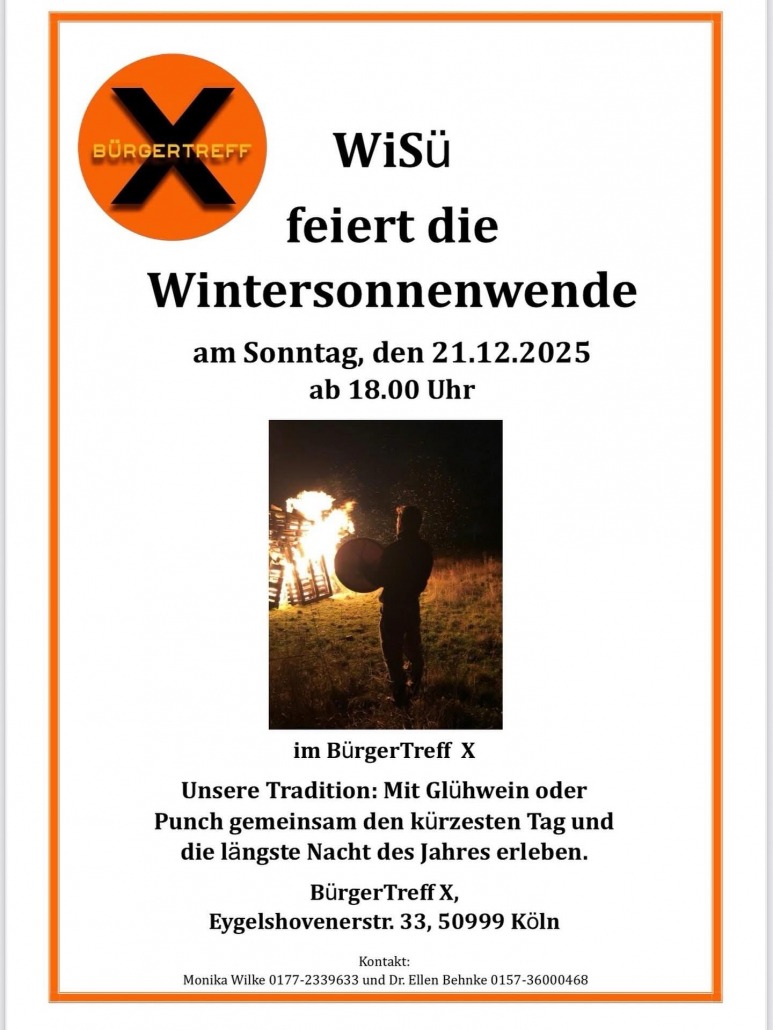 WiSü feiert WintersonnenwendeAktuelles 17. Dezember 2025/von Gastbericht https://koelner-stadtteilliebe.de/wp-content/uploads/2025/12/Hintergrund-Winter-2025.png 500 500 Gastbericht https://koelner-stadtteilliebe.de/wp-content/uploads/2025/12/StadtteilLiebe-1024x146b-1.png Gastbericht2025-12-17 10:55:082025-12-17 10:55:08WiSü feiert Wintersonnenwende