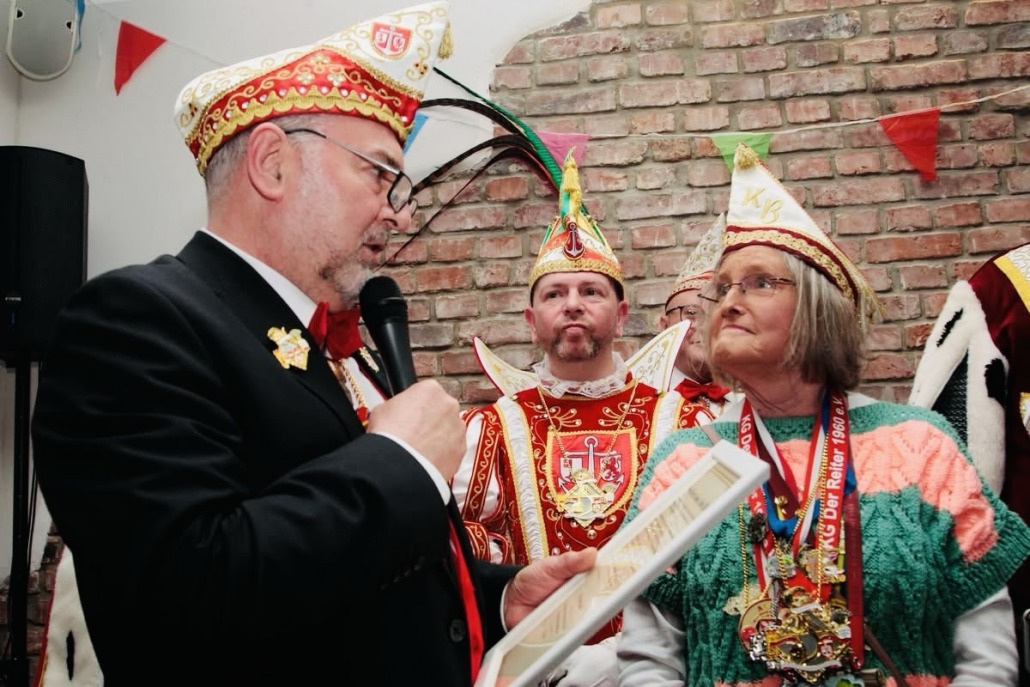 Denn sie wussten mit Kölle Alaaf kann man jeden hochleben lassen, und an diesem Abend wurde wirklich jeder hochgelebt. Bei allen Anwesenden wurde sich bedankt, vor der Dreigestirnsbegleitung wurde sich verneigt und Ellie wurde geehrt.